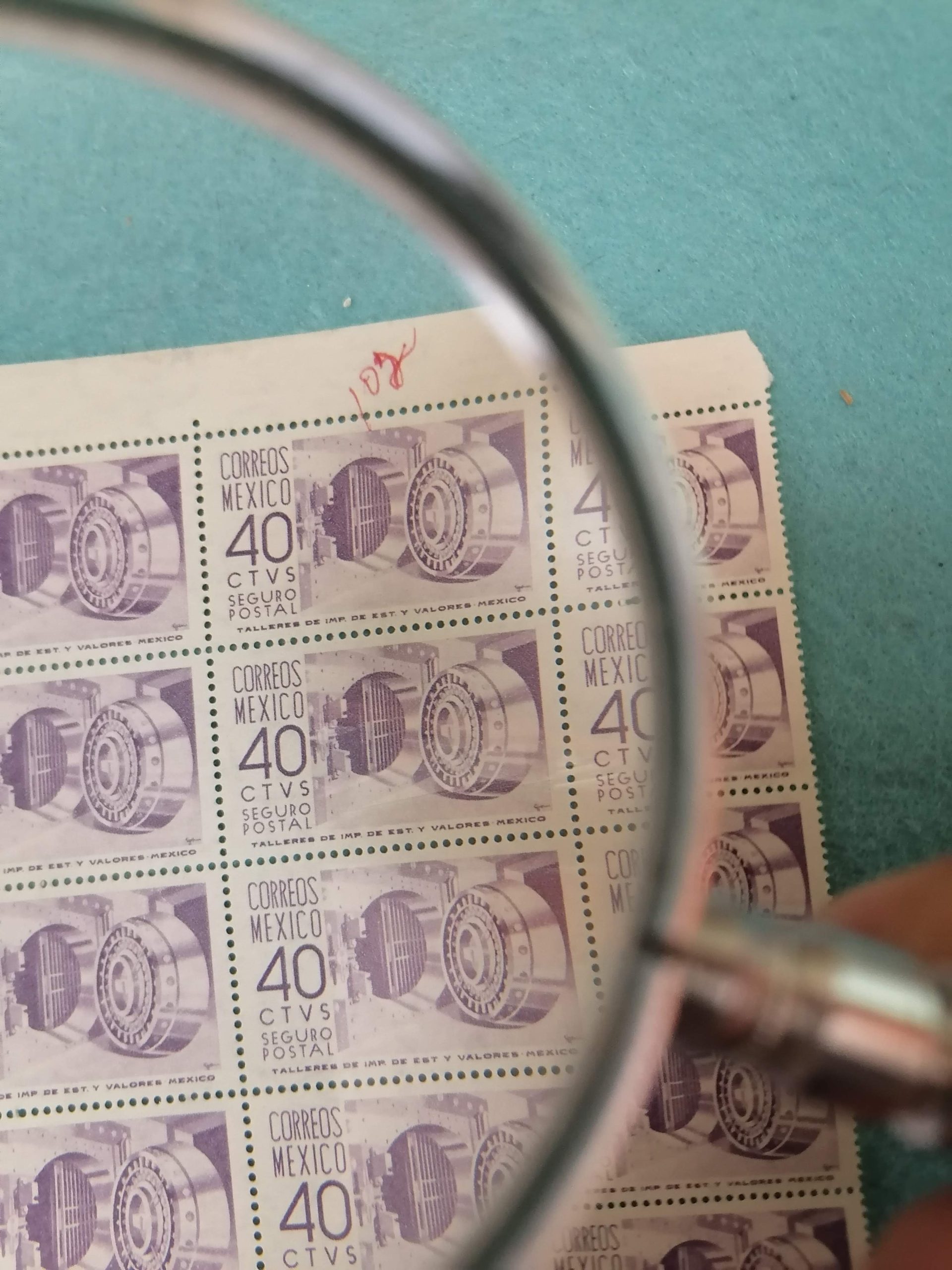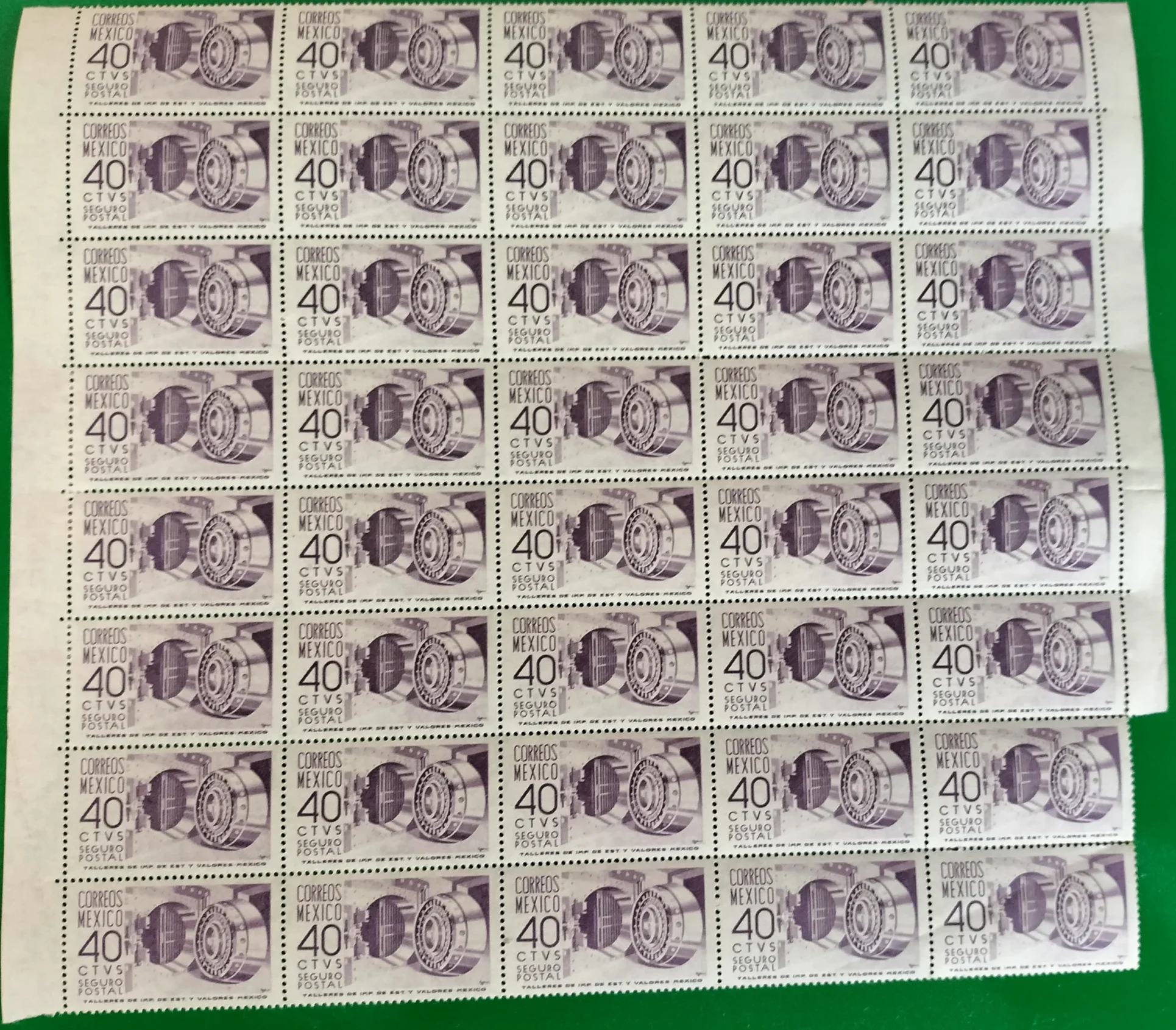 Planilla de estampillas en forma de block de 28 piezas de 40 cent seguro postal correos Mexico